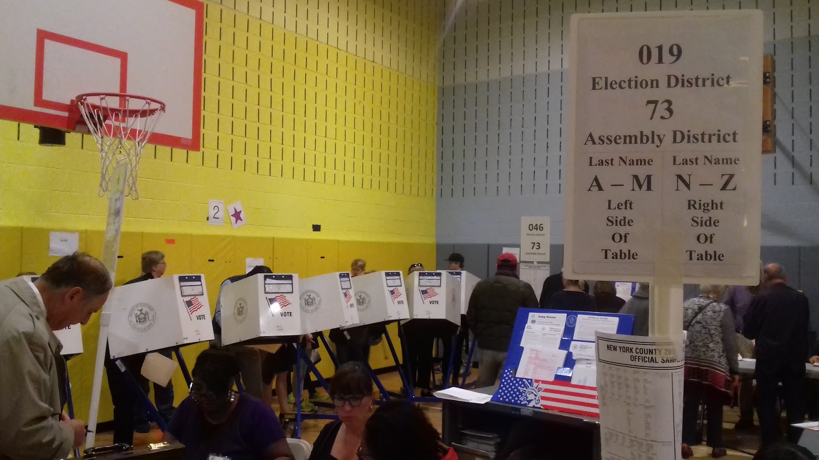Manhattan, het hart van de stad New York is zoals altijd druk en lawaaierig, maar er is ook een voelbare spanning. Spanning van veranderingen die eraan komen? Om de sfeer te proeven ga ik langs het stemlokaal vlak bij mij in de buurt in het centrum van de stad, waar een paar uur eerder de familie Trump hun stem heeft uitgebracht. Er staan lange rijen kiezers in de rij buiten de stemlokalen.